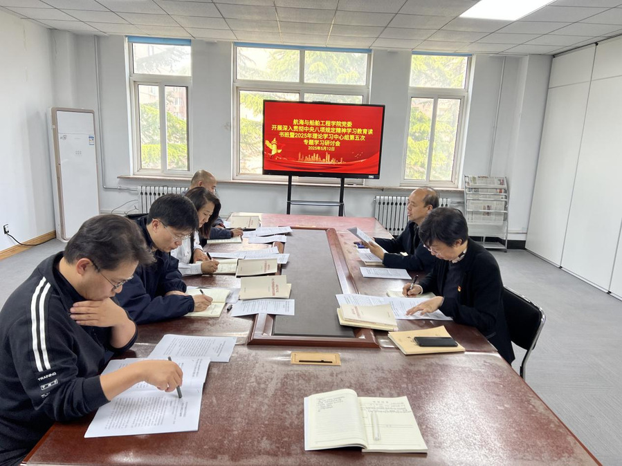 5月12日,航海与船舶工程学院党委在学院会议室N320开展了深入贯彻中央八项规定精神学习教育读书班暨2025年理论学习中心组第五次专题学习研讨会。院党委理论学习中心组成员参加会议,学院党委书记赵希波主持会议。