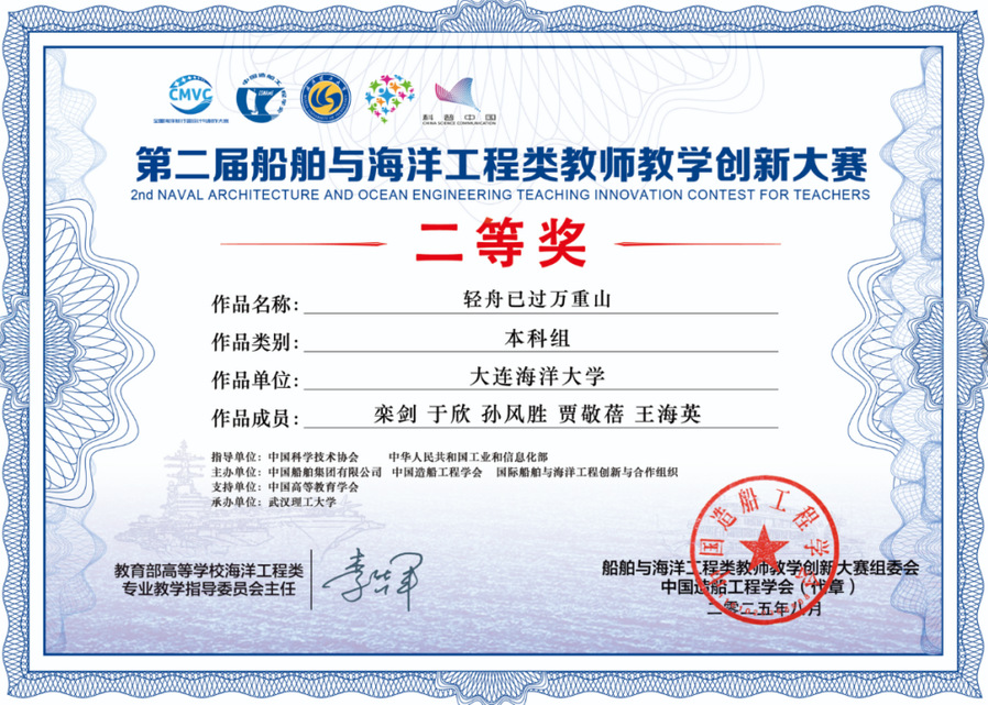 1 | 教师教学创新大赛 | 轻舟已过万重山 | 栾剑、于欣、孙风胜、贾敬蓓,王海英 | 二等奖 |