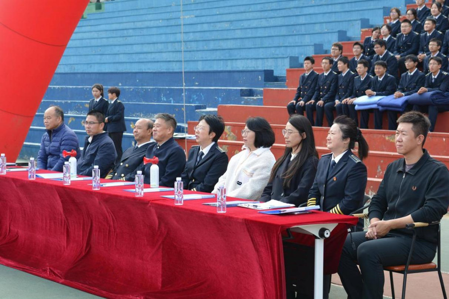 10月29日,我院在学校操场举办“鑫裕盛杯”准军事化管理综合素质大练兵评比活动。校党委副书记李智军、“鑫裕盛”公司经理张超、指导轮机长包宗安、校学生处处长杨蓬、校团委书记刘冰冰、校学生处张云鹏、学院党委书记赵希波、院长隋江华、党委副书记陈禹娜、团委书记宋敬星、辅导员于洋及学生代表共同参加。活动由2025级新生高靖轩主持。