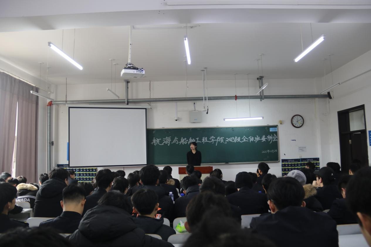 12月12日,航海与船舶工程学院在獐子岛教学楼101教室召开2023级全体班委例会,会议由2023级辅导员郎幸主持,研究生辅导员李琦、2023级全体班委参加会议。