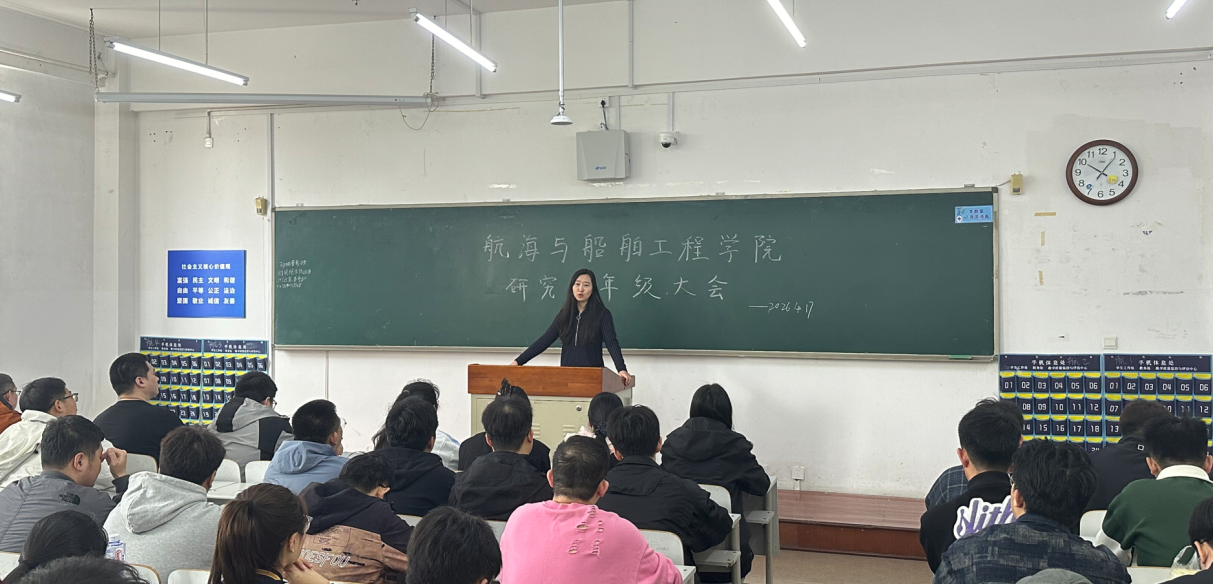 为进一步规范研究生培养管理、强化科研学风建设、筑牢安全防线,4月17日上午10点,航海与船舶工程学院在獐子岛教学楼110教室召开全体研究生大会。学院纪委书记黄亚南、兼职辅导员董震鹏及学院全体研究生参会。